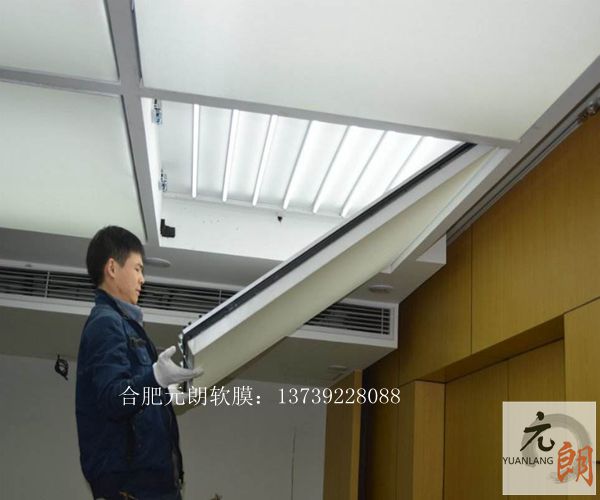 五,拆下來之后開始安裝軟膜,安裝軟膜過程中一定要注意,不要把軟膜搞臟了,注意防護,軟膜天花裝好之后,跟據之前調整好的位置再把副龍骨框架裝上去,調整好鎖具能夠順利打開和關上就可以。